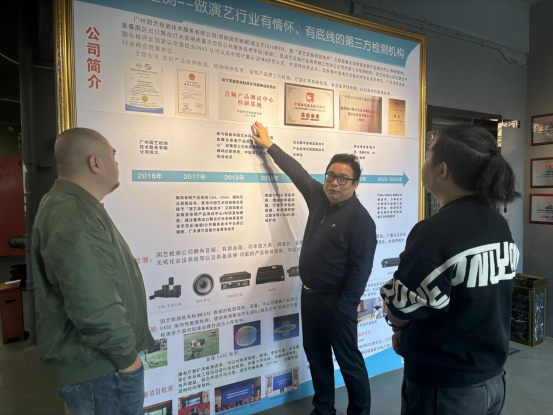 2025年3月12日上午,廣東省湖南商會演藝設(shè)備專業(yè)委員會秘書長孫思與廣東省江西商會演藝設(shè)備專業(yè)委員會秘書長劉生明一行蒞臨廣州國藝檢測技術(shù)有限公司(以下簡稱“國藝檢測”)指導(dǎo)工作。參觀交流后,兩位秘書長對國藝檢測在演藝設(shè)備檢測領(lǐng)域的技術(shù)實力與堅守行業(yè)情懷與底線給予了高度評價,并就行業(yè)未來發(fā)展進(jìn)行了深入交流。