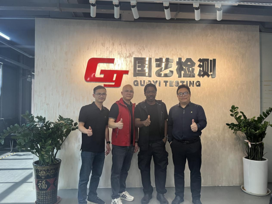 2025年3月12日下午,廣東省廣西商會演藝設(shè)備專業(yè)委員會會長戴小明攜非洲國際友人蒞臨國藝檢測指導(dǎo)工作,在國藝檢測總經(jīng)理黃顯強(qiáng)的帶領(lǐng)下,參觀一樓的可靠性檢測中心以及二樓的全消音室。通過此次的參觀交流,非洲國際友人對國藝檢測的基礎(chǔ)設(shè)施的專業(yè)性給予高度的評價。